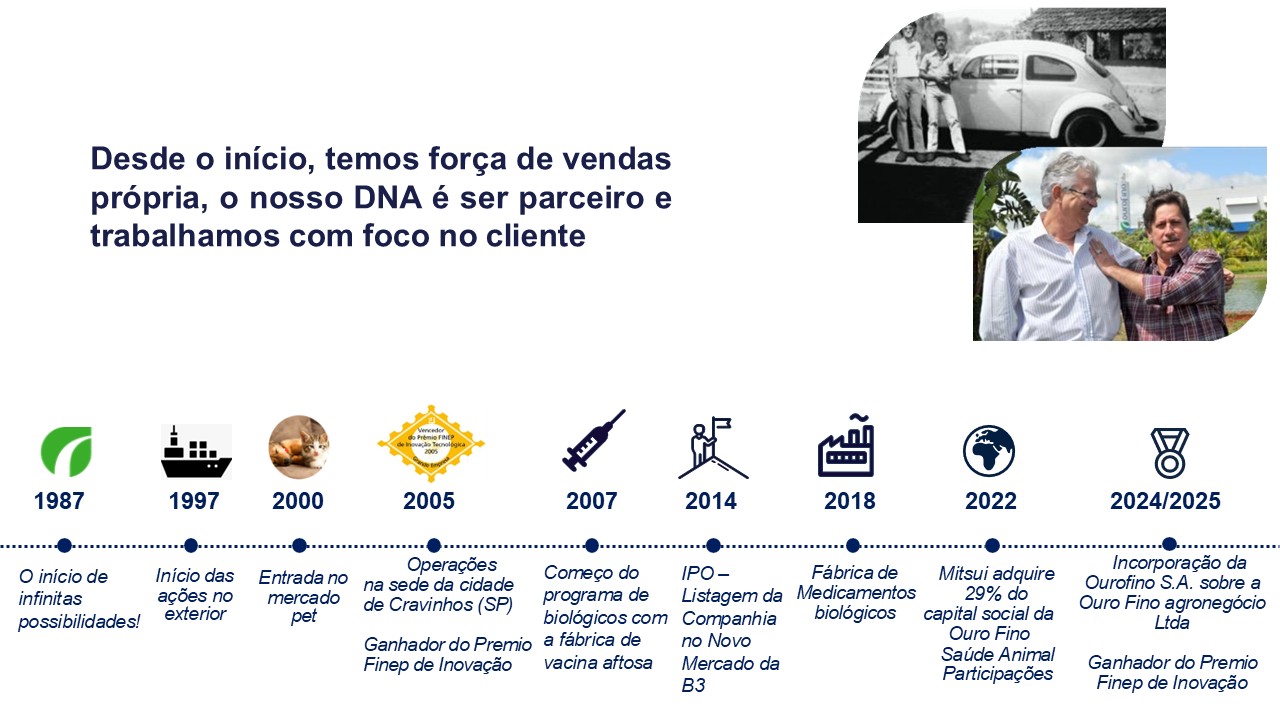 O grupo econômico no qual a Companhia hoje se insere foi constituído em 1987 por seus sócios fundadores Norival Bonamichi e Jardel Massari, inicialmente com negócios voltados exclusivamente para a fabricação de medicamentos e outros produtos veterinários para animais de produção (bovinos, equinos, aves e suínos).